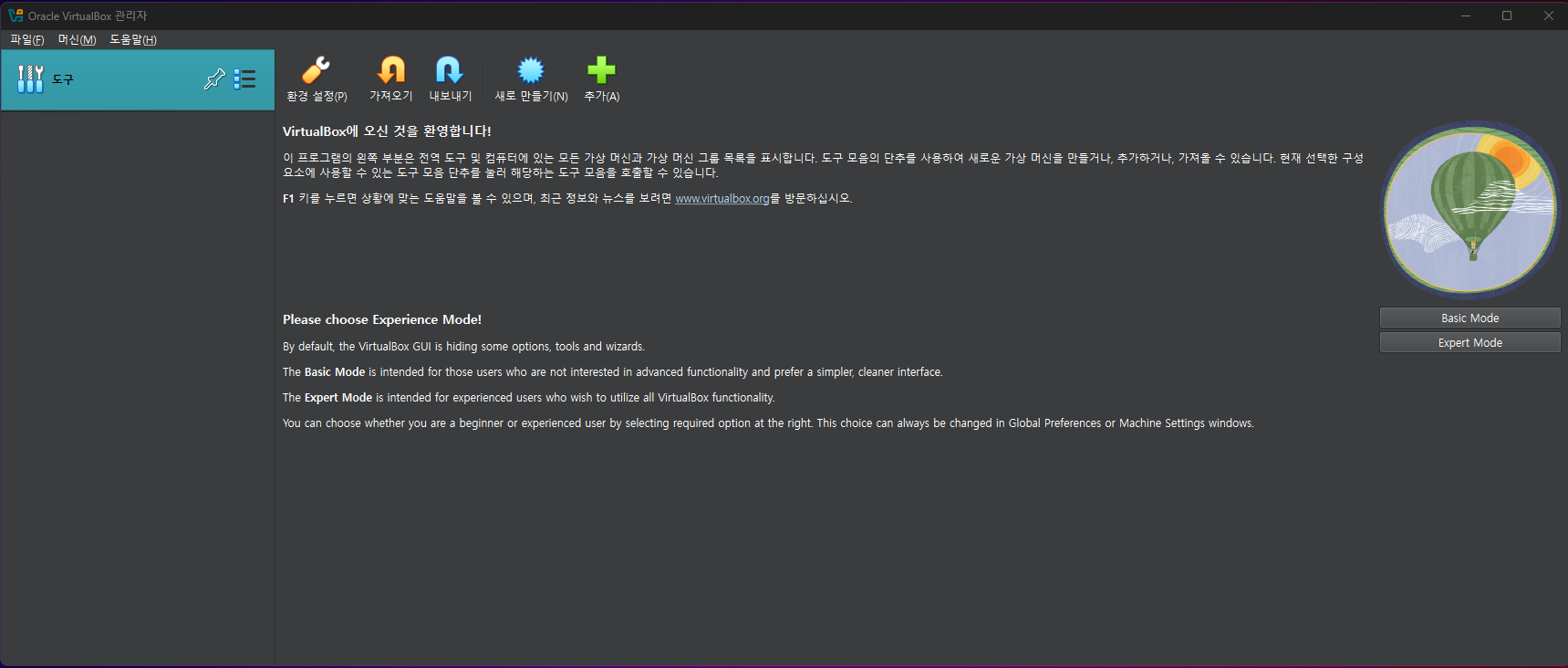 이렇게 virtualbox설치를 마쳤다.